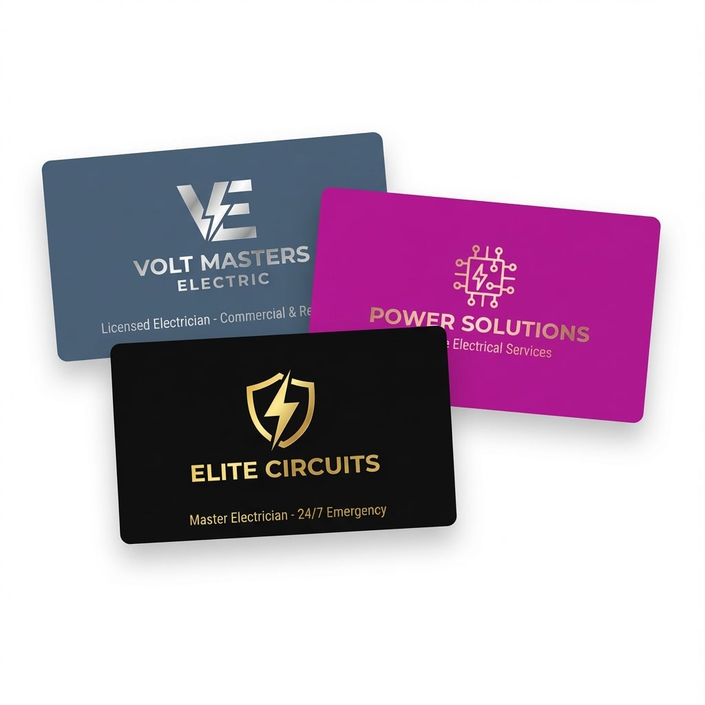 For construction sites and on-site work, matt cello or velvet lamination provides excellent protection from dirt, moisture, and frequent handling. These finishes keep your cards looking professional even after exposure to harsh work environments. Premium finishes like spot UV or raised foil convey professionalism. We recommend 400GSM or 450GSM card stock for maximum durability in demanding electrical work environments.